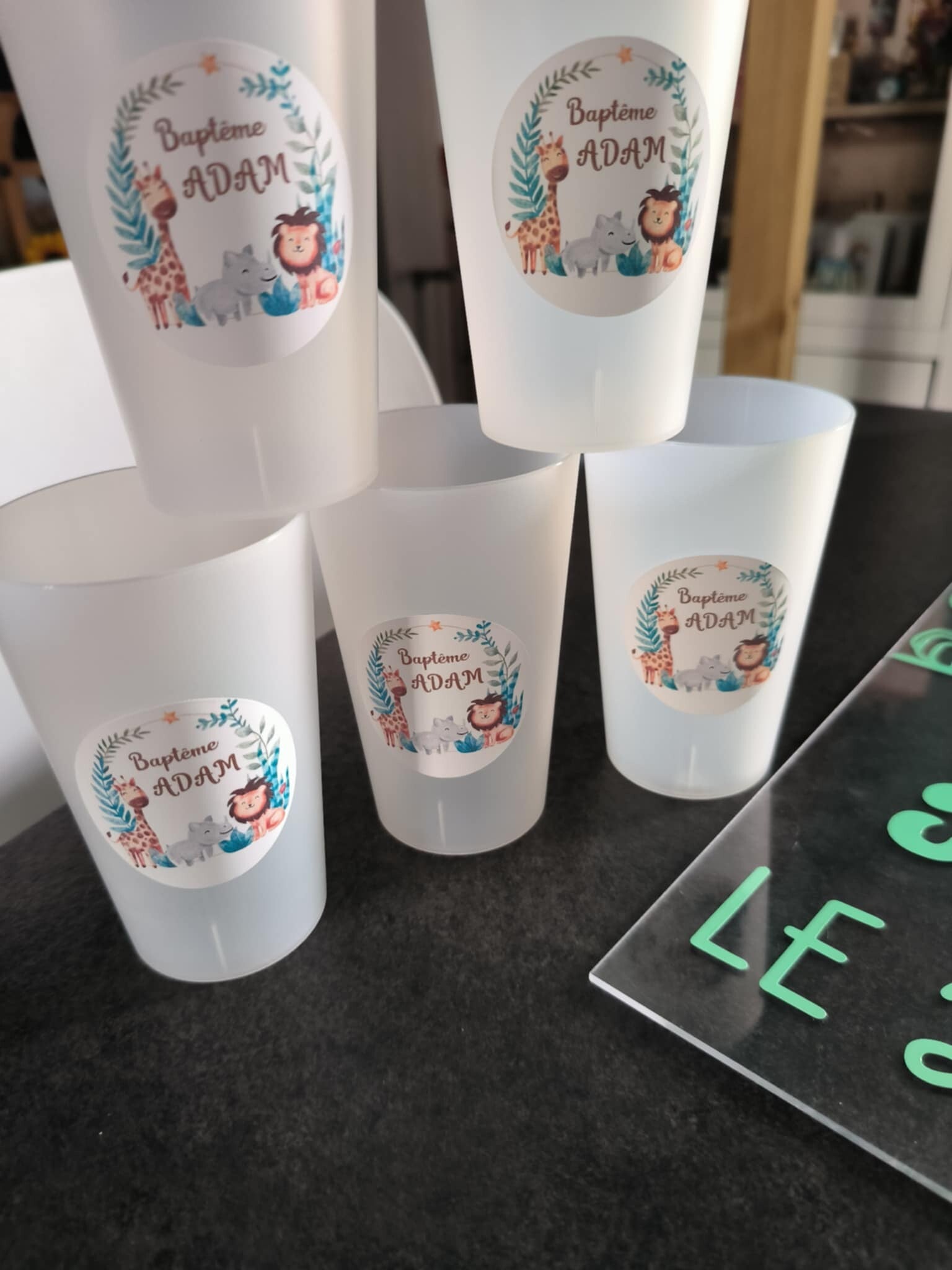 Offrez un souvenir unique et réutilisable avec ces gobelets personnalisés de 33 cl, parfaits pour tous vos événements : baptème, EVJF, anniversaire, mariage, baby shower ...