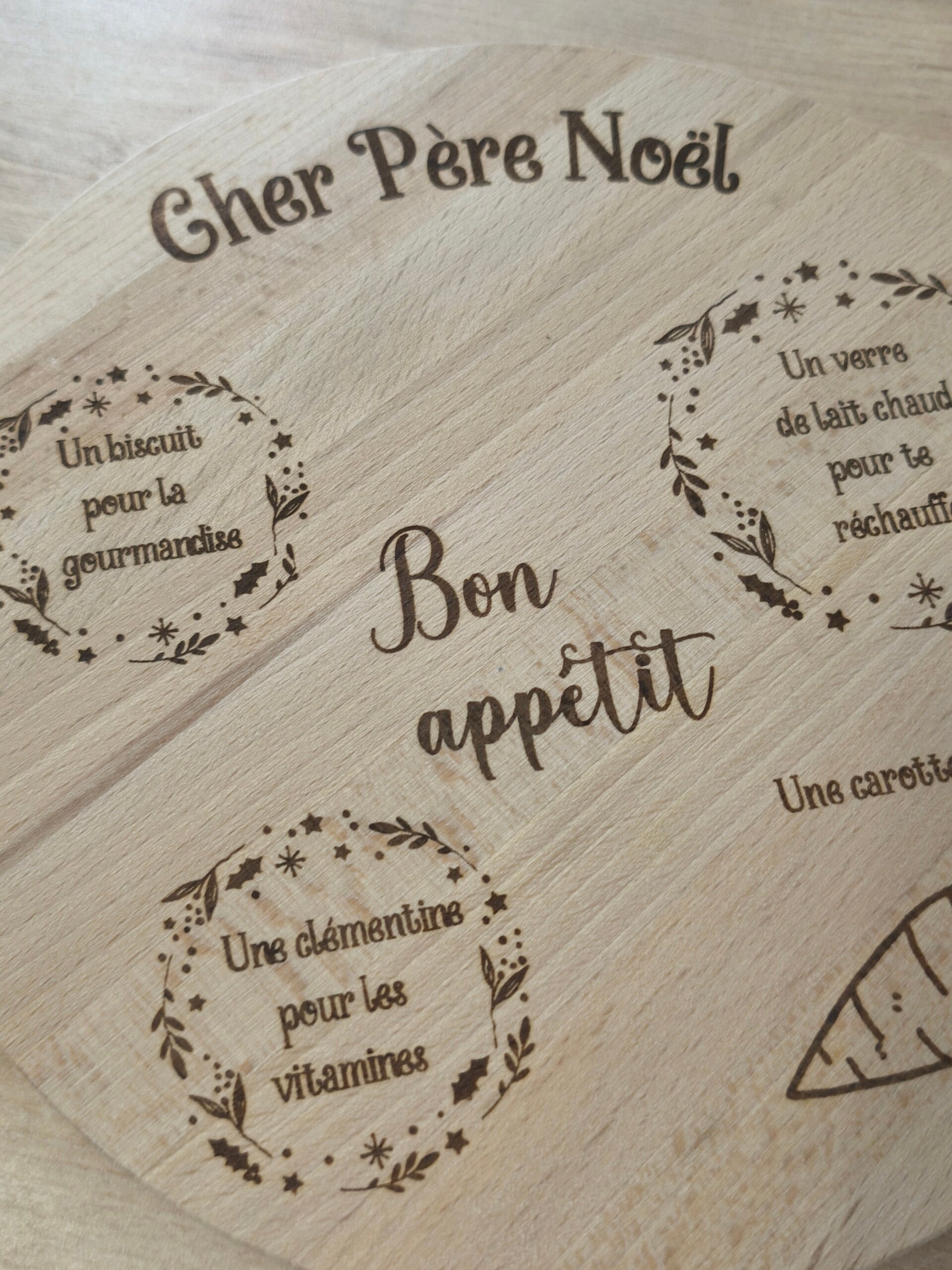 Plateau rond en bambou ou autre vois de qualité suivant arrivage, gravure comprise , possibilité d'ajouter rune touche de personnalisation a notifier lors de la commande .