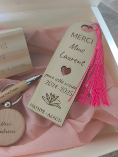 Possibilité de personnaliser le marque page avec le prénom de l'enfant , la classe, l'année , le prénom de la maîtresse , aesh etc...