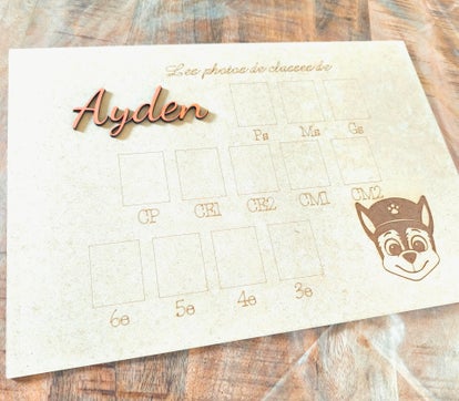 Un jolie cadre photo photo réaliser en MDF 3 mm qui saura mettre en valeur les photos de classe de votre enfant